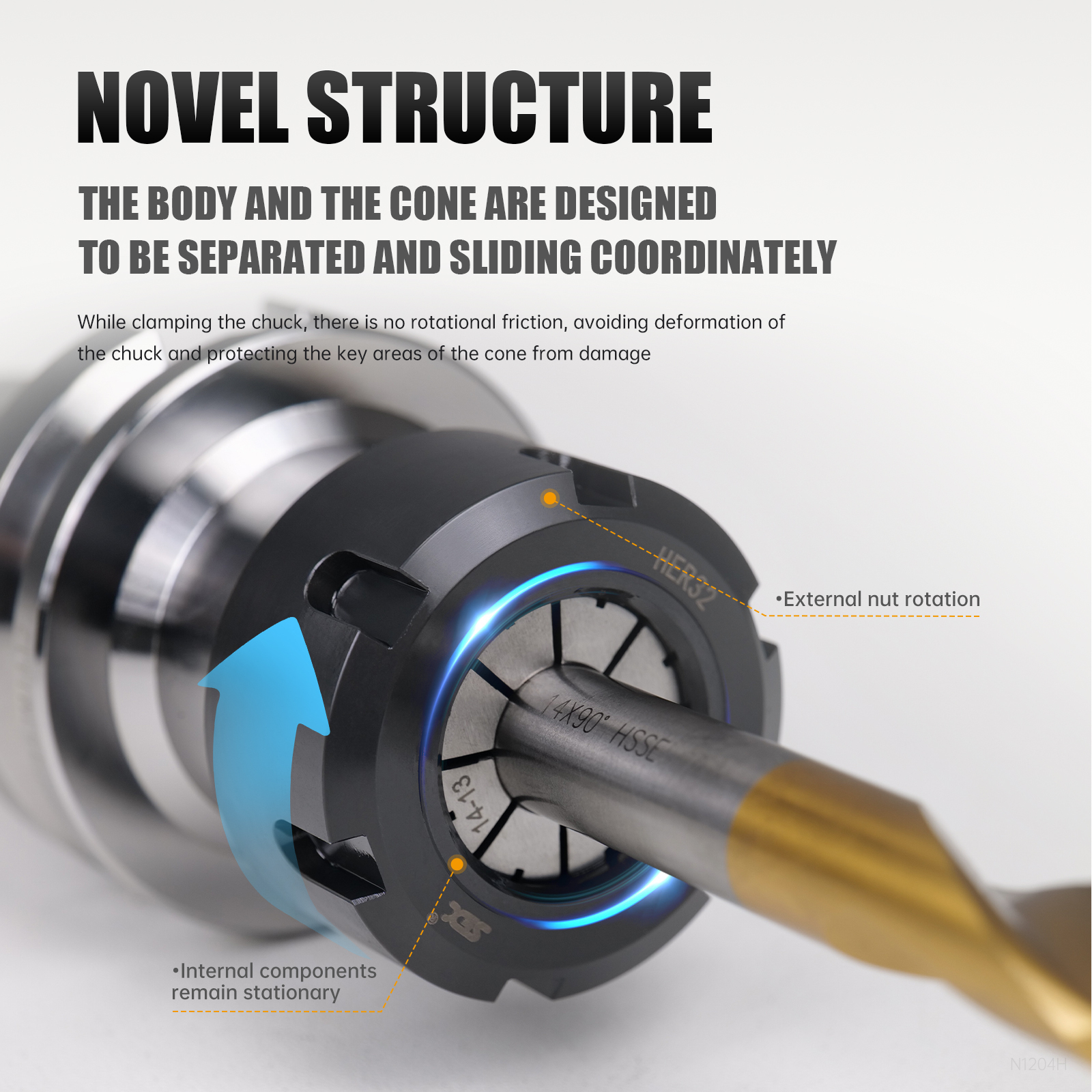 Innovative Design: The separation of the body and cone allows for coordinated sliding, eliminating rotational friction during chuck clamping. This design prevents deformation of the chuck and protecting key areas of the cone from damage.