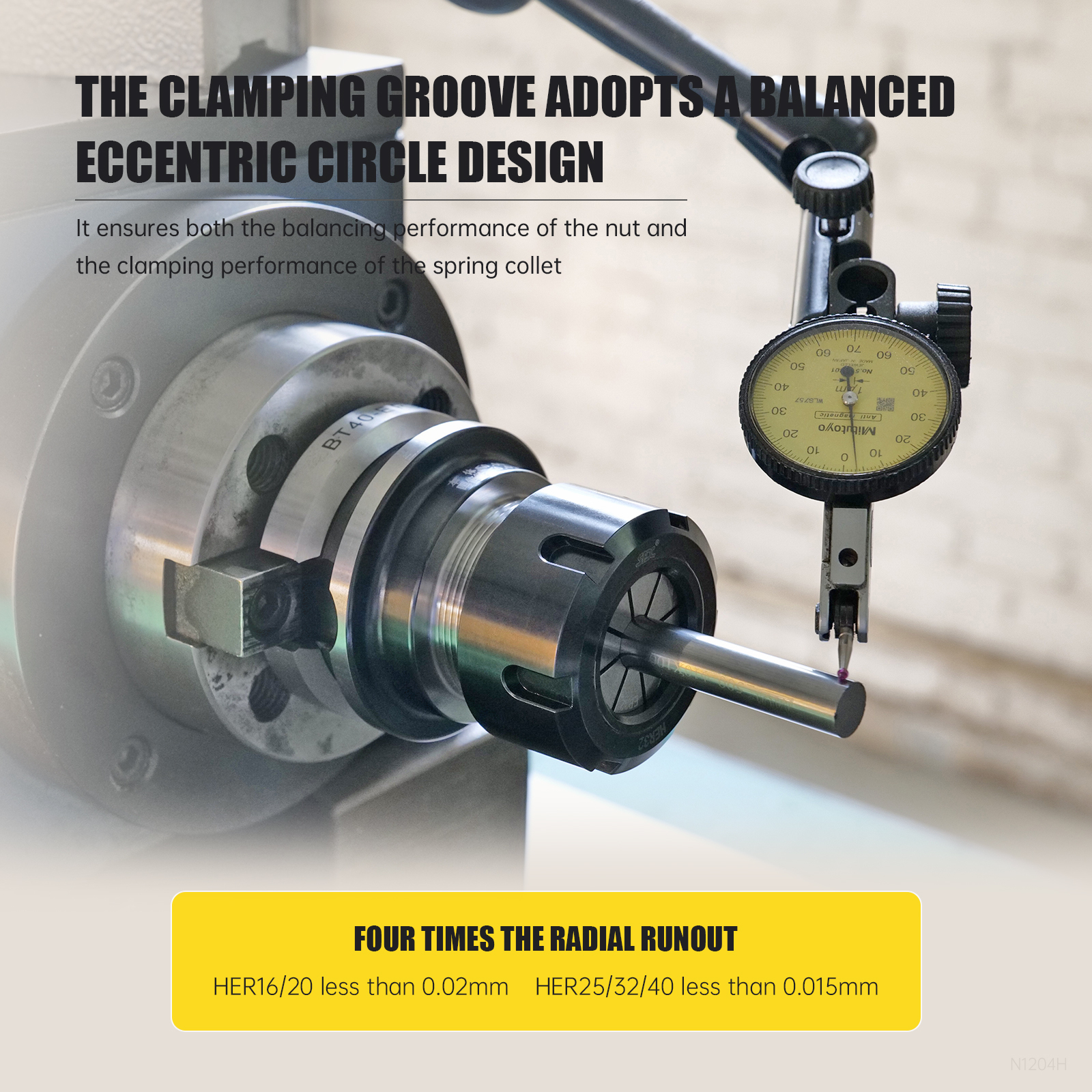 Balanced Eccentric Circle Clamping Groove: The clamping groove adopts a balanced eccentric circle design, ensuring optimal balancing performance of the nut and superior clamping performance of the spring collet.
